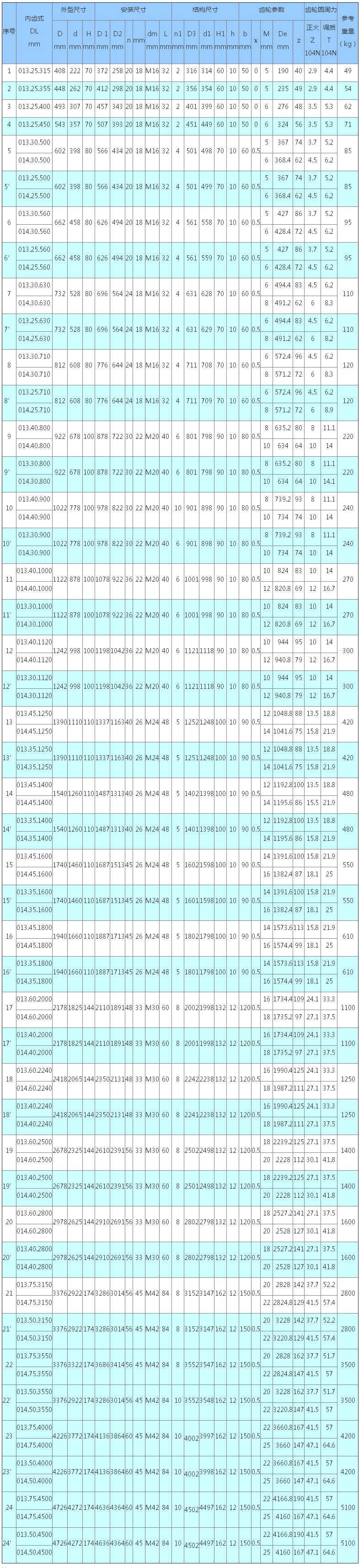 內齒式圖紙列表