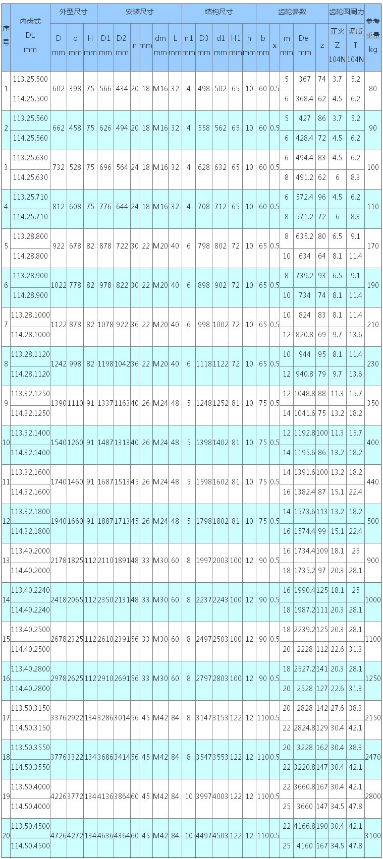 3、表內(nèi)齒輪圓周力為最大圓周力,額定圓周力取其1/2。