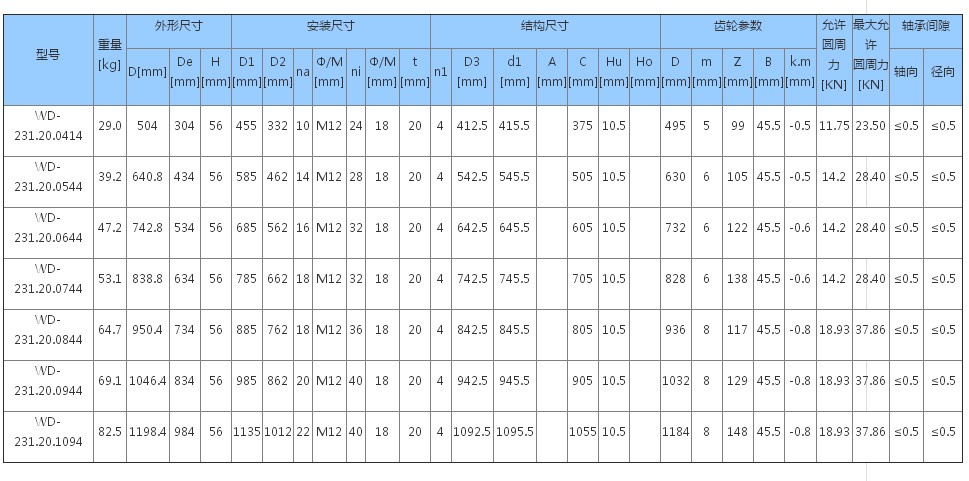 內齒式圖紙列表