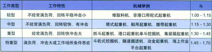 fs值可按下表選取